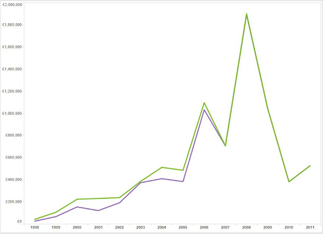 previous posts, this fell from highs of £90K in 2009 to under £10K in 2010.